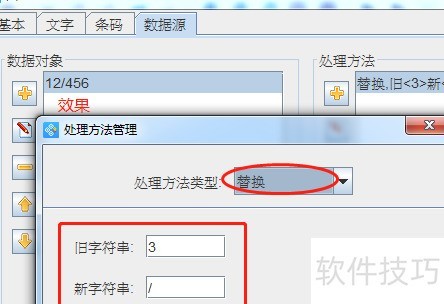 5、 可将原数据中指定字符替换为新设定的字符,例如将原字符3替换为/,处理后结果即为12/456。