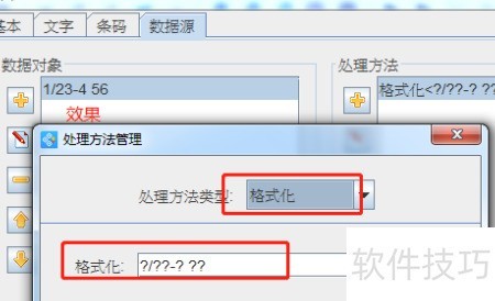 7、 将数据按指定格式处理,用英文问号?替代每一位数字,问号数量与数据位数一致,并在相应位置加入斜杠、横线、空格等字符。例如格式?/??-? ??对应实际数据1/23-4 56,实现数据的规范化展示。