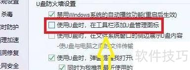5、 在U盘防护界面,勾选使用U盘时在工具栏添加管理图标选项。