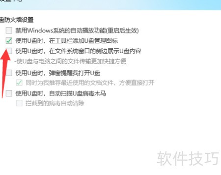 5、 勾选此项可在使用U盘时于工具栏显示管理图标。