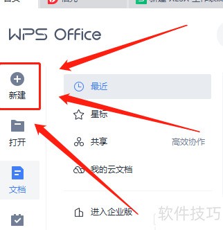 1、 打开WPS首页,点击右侧的新建按钮即可。