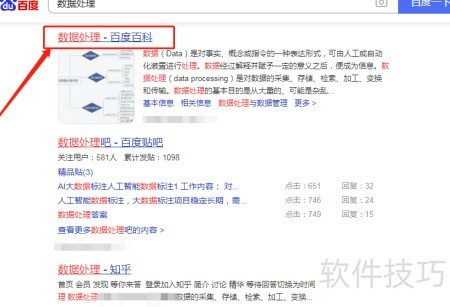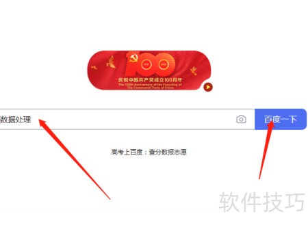 1、 在百度首页搜索栏输入数据处理,然后点击搜索图标进行查询。
