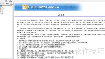 3、 对话框中展示的内容即为所需的定额说明与工程量计算规则。