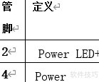 3、 接口2脚为电源指示灯正极,4脚为负极。