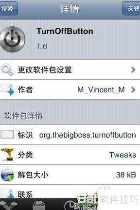 在Cydia中搜索并安装TurnOffButton,该插件位于BigBoss源内,免费提供,安装后即可使用关机按钮功能。