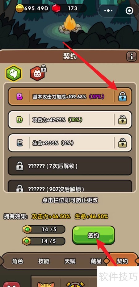 3、 当获得高品质属性时,可锁定该条目,继续为其他条目签约属性,确保所有条目均具备优质属性。