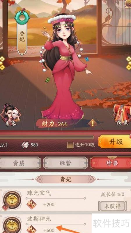 3、 进入香妃页面后,点击底部珍兽即可查看波斯神光。