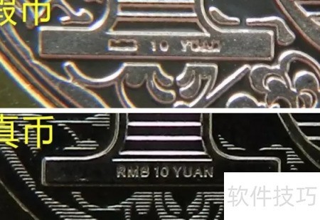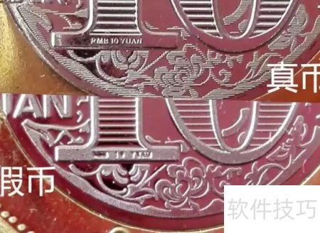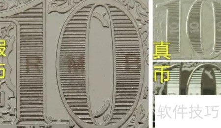 5、 真币转动时可见RMB及数字10变化,下方隐有rmb 10 yuan暗记。