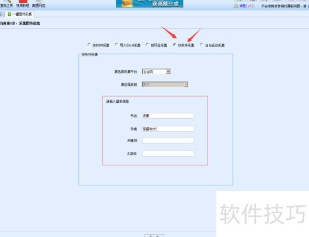 1、 注册后登录,点击一键图书采集功能,本次主要采用第四种方式进行操作。