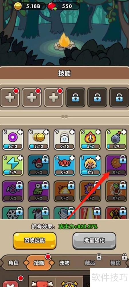 1、 打开次神光之觉醒,点击技能按钮进入。