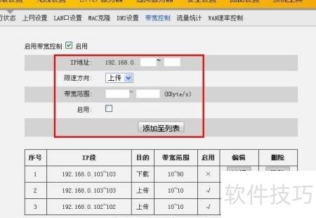 6、 利用宽带控制功能,添加规则限制网络中流量过大的设备,实施有效的带宽管理。