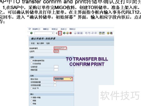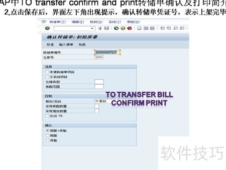 1、 在主界面输入事务代码LT12,按回车进入确认转储单:初始屏幕,填写所需字段信息后,点击保存按钮完成操作。