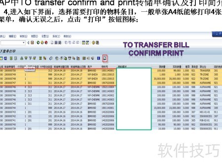 4、 进入界面后,选取需打印的物料条目,通常一张A4纸可打印四份上下架单,核对无误后,点击打印按钮即可。