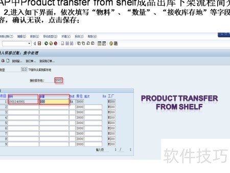 2、 进入界面后,依次输入物料、数量、接收库存地等信息,核对无误后点击保存即可。