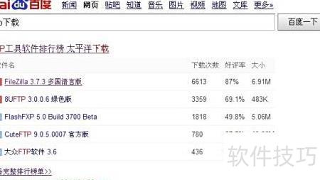 2、 在浏览器中输入FTP协议地址,进入太平洋下载网站,找到并下载名为FileZilla_3.7.4_win32-setup.exe的安装文件,完成下载后即可进行后续操作。