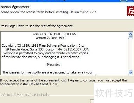 4、 运行FileZilla_3.7.4_win32-setup.exe安装程序,连续点击下一步,直至安装完成。
