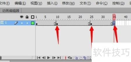 8、 在第25帧与第35帧处采用相同方式添加关键帧。