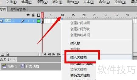 7、 在第10帧处点击鼠标右键,选择插入关键帧。