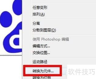 5、 右键点击插入的logo图标,选择转换为元件选项。