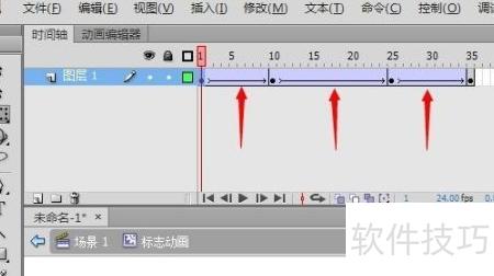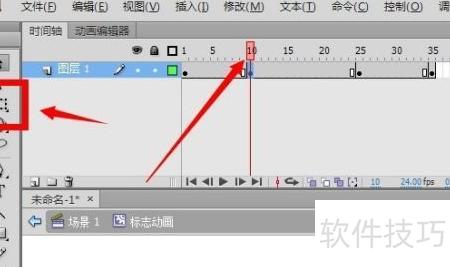 13、 将第1帧与第10帧关键帧用相同方式制作传统补间动画。