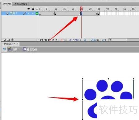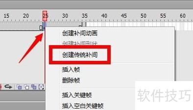 12、 右键点击25帧关键帧,创建传统补间动画。