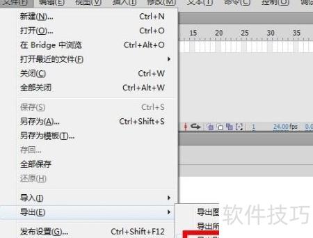 14、 选择文件菜单中的导出选项,点击导出影片,即可保存已完成的3D选择图标Flash动画。