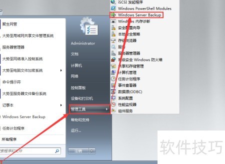 6、 打开开始菜单,选择管理工具,然后点击Windows Server Backup即可。