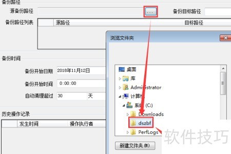 15、 在下方备份路径中定位源路径,点击右侧的浏览按钮,于弹出窗口内选择需备份的文件或文件夹,确认即可完成操作。