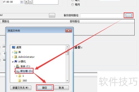 16、 在源备份路径右侧选择目标路径,点击...按钮,于弹出窗口中指定保存位置后确认。
