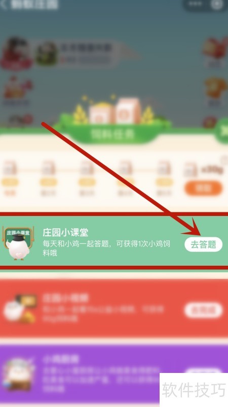 1、 进入蚂蚁庄园,点击小课堂旁的即可参与。