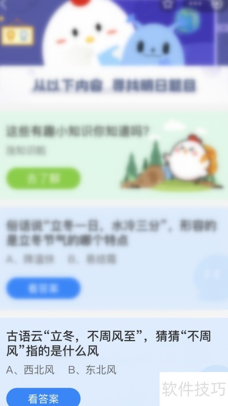 2、 蚂蚁庄园今日问题:古语立冬,不周风至中的不周风是指哪个方向的风?
