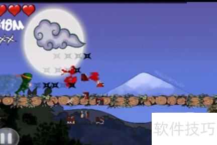 3、 毫无疑问,你的任务是在疾驰途中清除所有挡路的敌人。值得注意的是,新版中新增了乌鸦角色,它们往往突然出现并带来干扰,务必及时击落,否则可能因此失分甚至失败。在奔跑过程中,忍者有机会拾取飞镖类道具,这些道具不仅能提升移动速度,还能增强跳跃高度,让行动更加敏捷。