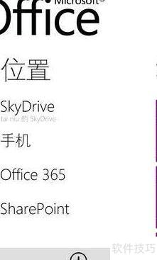 2、 在手机上启动Office应用,滑动至位置界面,选择SkyDrive,即可访问从电脑上传的文件,前提是已在手机设置中登录并添加了Windows Live账号。