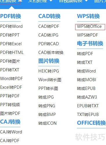 2、 打开转换器界面,点击导航栏上方的文档转换,在下拉菜单中选择WPS转Office功能即可完成操作。