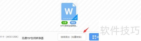 3、 打开WPS转Office功能后,选择并添加已准备好的文件,支持点击选取或直接拖拽上传。