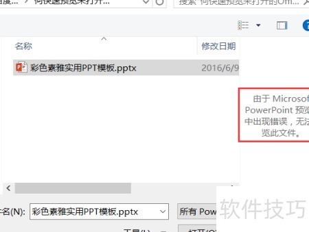 6、 使用Office 2010或Office 2016时,操作流程大致相同,但有时在预览PowerPoint文件时可能出现问题,系统提示由于Microsoft PowerPoint预览器中出现错误,无法预览此文件。遇到此类情况,可参考微软官方技术文档提供的解决方案。一种有效方法是通过新建一个Word文档,然后利用其内置功能插入并查看PPT内容,从而实现对PowerPoint文件的正常预览,避免因预览器故障导致的操作中断,提升办公效率。