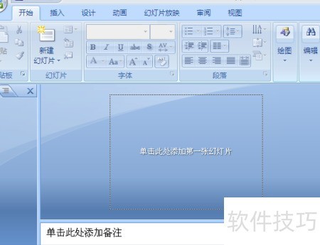 1、 在桌面空白区域右键单击,选择新建下的Microsoft PowerPoint 演示文稿,或通过开始菜单中的程序列表启动PowerPoint 2007,创建一个新的空白演示文稿文件。