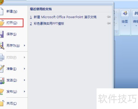 2、 点击左上角圆形图标,从菜单中选择打开选项即可。