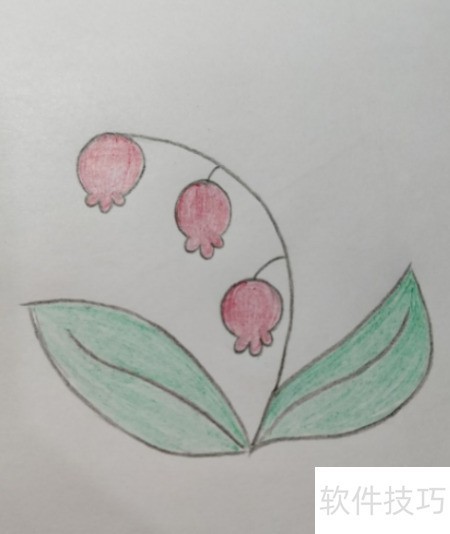 4、 最后上色完成,一朵美丽的铃兰花跃然纸上!