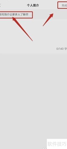 进入美的美居App,点击个人中心,选择编辑资料,填写简介信息并保存即可完成设置。