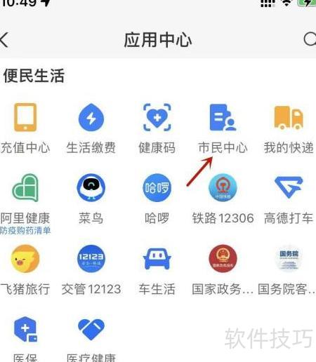2、 打开支付宝,进入应用中心,选择市民中心即可。