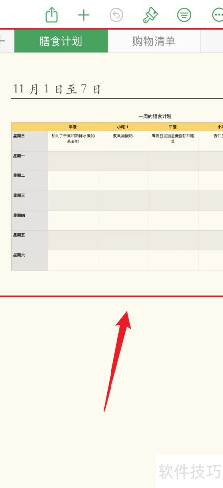 3、 在Numbers表格中完成膳食计划工作表的创建操作。