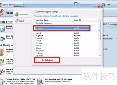 3、 打开后若未显示中文,可先选择Chinese(中文),再点击下方Set As Default设为默认。若界面已为中文,则无需操作,直接使用即可。整个过程简单快捷,便于用户快速切换语言环境。