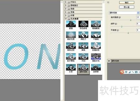 4、 选择滤镜中的渲染选项,应用塑料包装效果,调整高光强度至13,细节为6,平滑度设为9,确认设置即可。