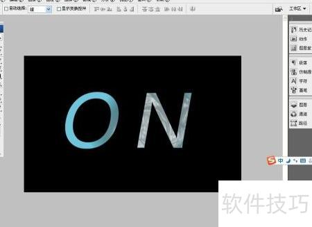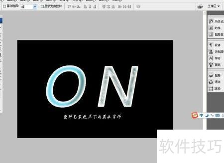 7、 使用横排文字工具输入内容,将字体颜色设为白色并确认。通过塑料包装滤镜,可迅速制作出蓝冰效果的字体。