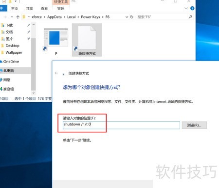 15、 若想通过快捷键执行特定操作,例如按 F6 加 R 重启电脑,可先按下 F6 和回车打开目标目录,右键选择新建→快捷方式,在位置栏输入关机命令:shutdown /r /t 0,完成后将该快捷方式重命名为 R。同理,其他操作也可照此设置,还可创建运行复杂任务的 .bat 批处理文件;若在位置栏中输入网址,则能通过快捷方式直接打开指定网页,实现快速访问。