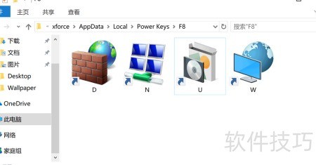 16、 将控制面板中的快捷方式添加到系统设置项中,即可通过组合键实现快速访问,例如按下 F8 加 U 打开程序与功能,F8 加 N 进入网络连接等操作。