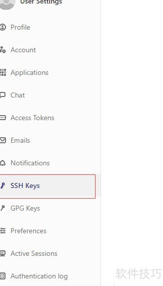 7、 查看页面左侧菜单,点击SSH密钥选项