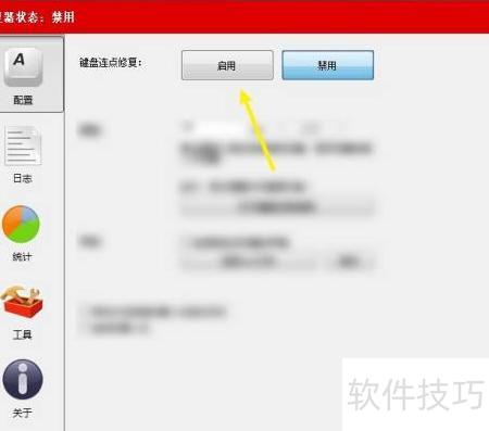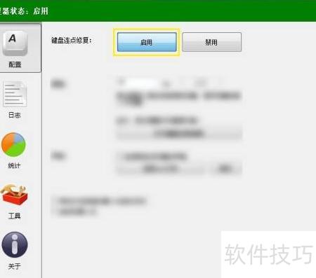 3、 点击启用按钮,即可成功开启键盘连点修复功能。