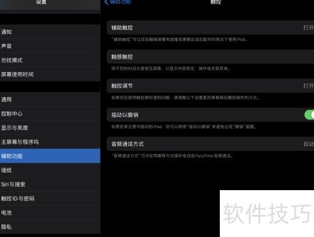 3、 进入触控设置,开启辅助功能中的鼠标键选项
